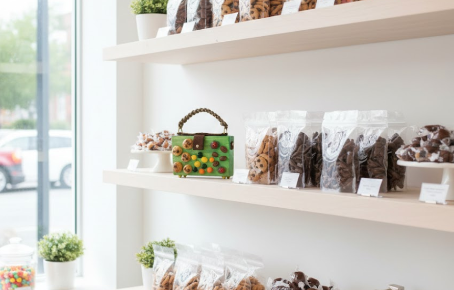 Box bag with candy and cookies. The idea is taking snacks everywhere and a conversation starter. In some situations some may want to take a piece and picnic.