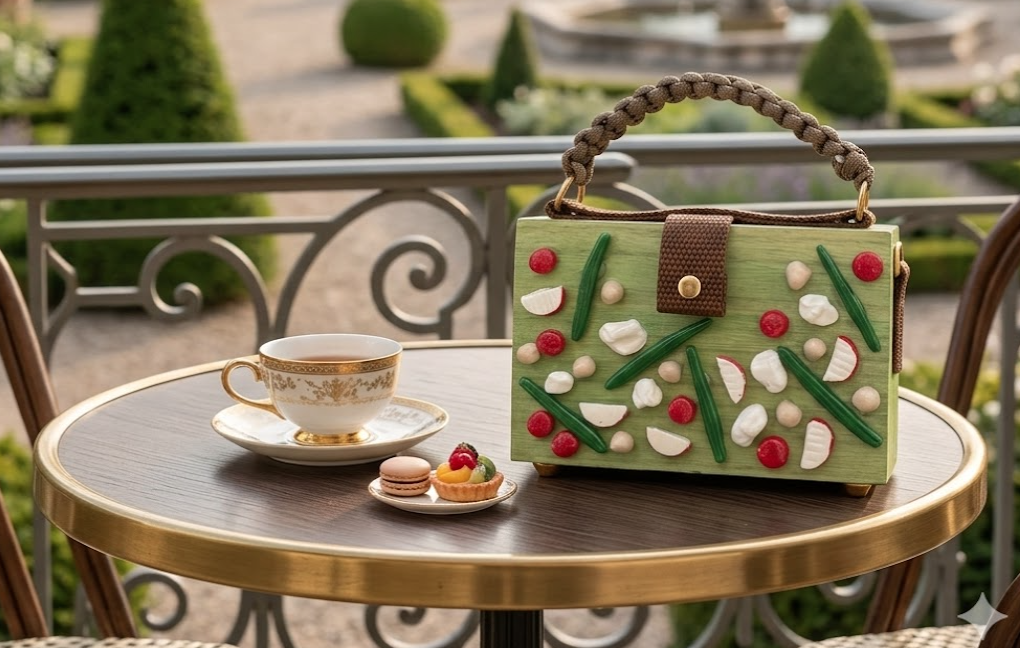 Tiny pieces of the handbag create the cutest bracelets. Each piece molded from natural clay with bracelets more delicate tiny pieces. Super cute picnic handbag. mv.
