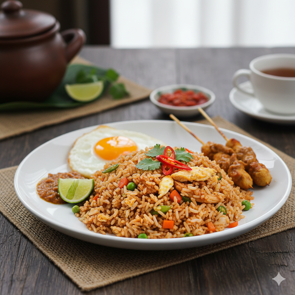 Nasi Goreng, or Indonesian fried rice, is a wonderfully flavorful and versatile dish. What sets it apart is the use of kecap manis (sweet soy sauce) and often shrimp paste (terasi/belacan), which give it a unique savory-sweet and umami depth.
